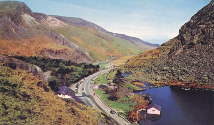 Note Postcard view of the head of Llyn Ogwen, showing the start point for SA's 1980 expedition.