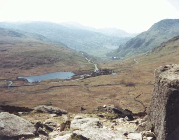 Note A view of Pen-y-Gwryd from halfway up the path to the Glyders plateau. Taken on Gold C's 1981 expedition.